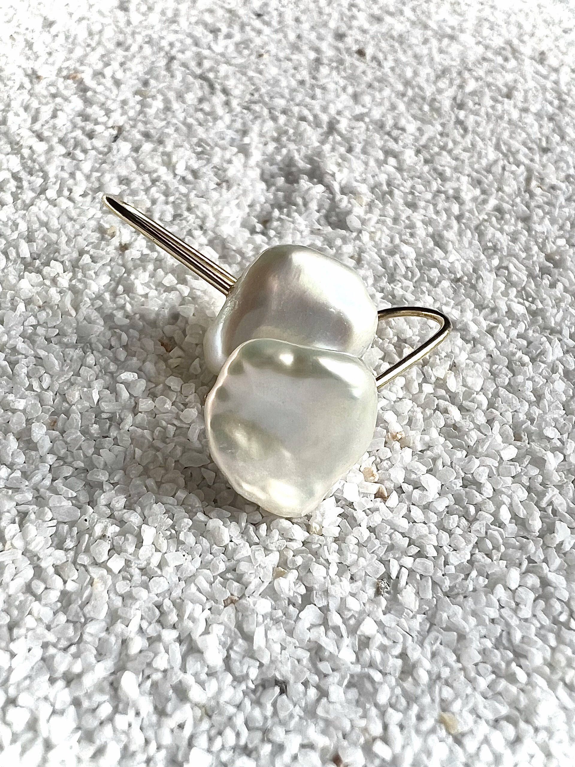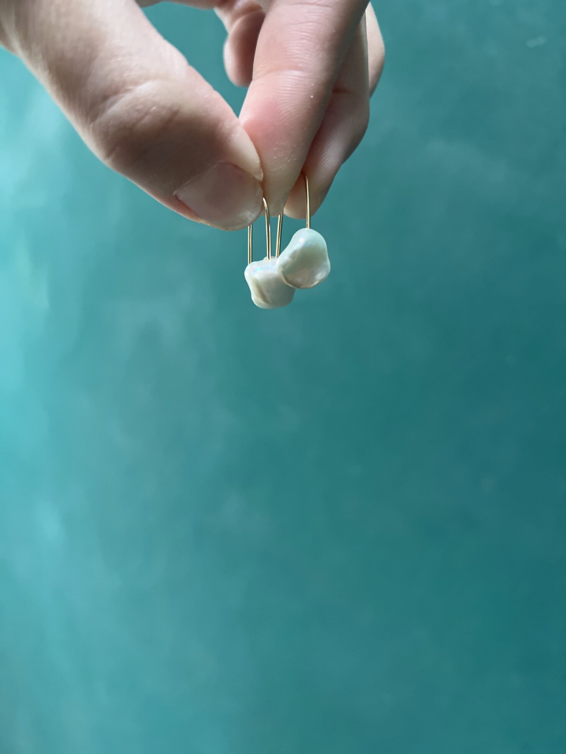 Hun onregelmatige vorm zorgt ervoor dat geen twee parels hetzelfde zijn! Hangend aan een 14kt geelgouden haak laten de parels hun prachtige kleur zien.