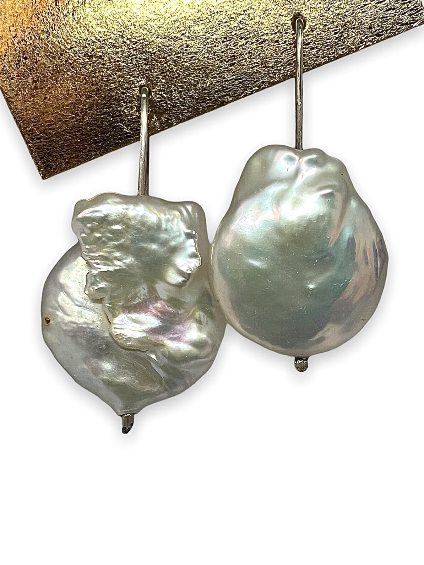 Big baroque pearls with a great luster! Their irregular shape ensures that no two sets are alike! The pearls have a beautiful creamrose color.