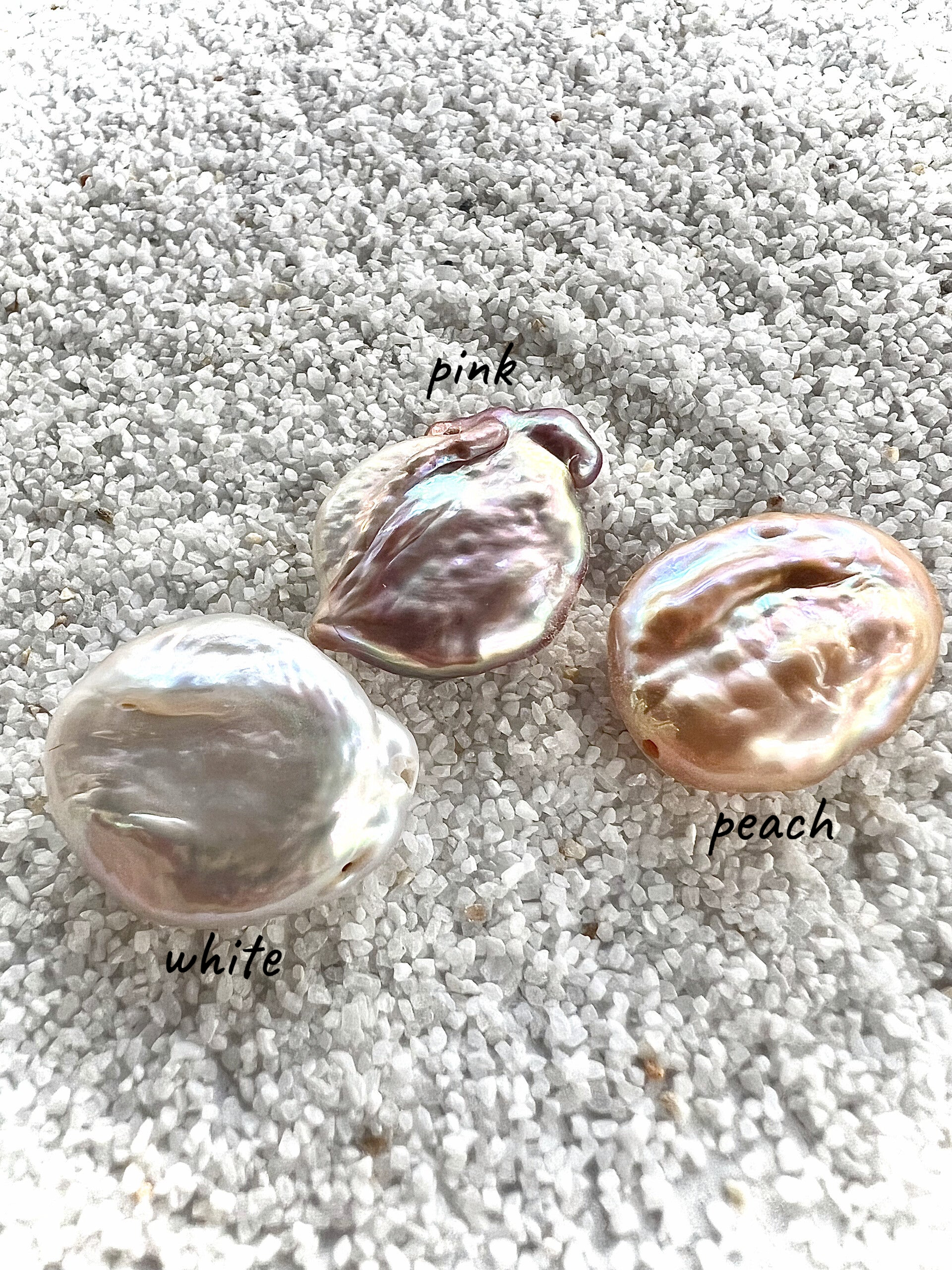 Parels zijn verkrijgbaar in roze, wit of perzik.