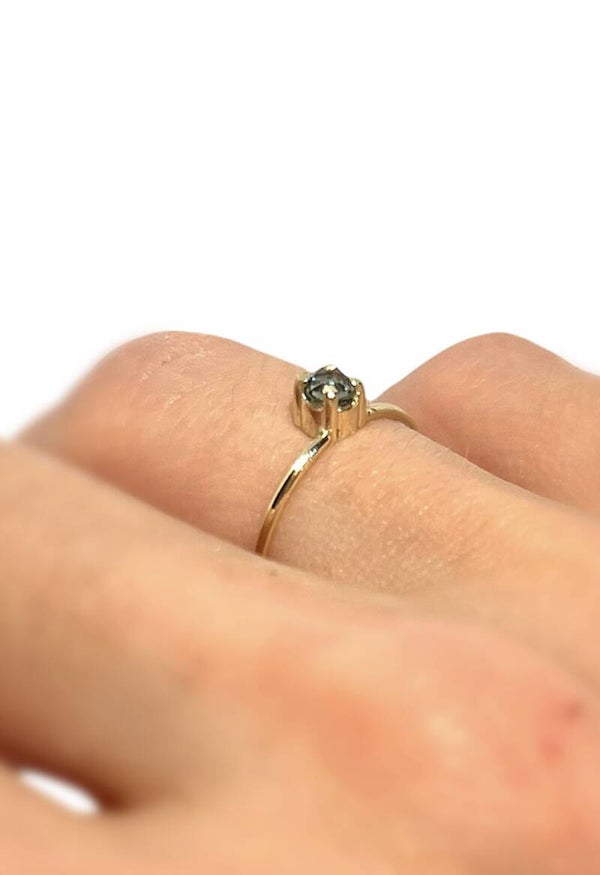 De stenen hebben een diameter van ongeveer 3,5 mm. De ringband is vierkant en 1 mm breed.