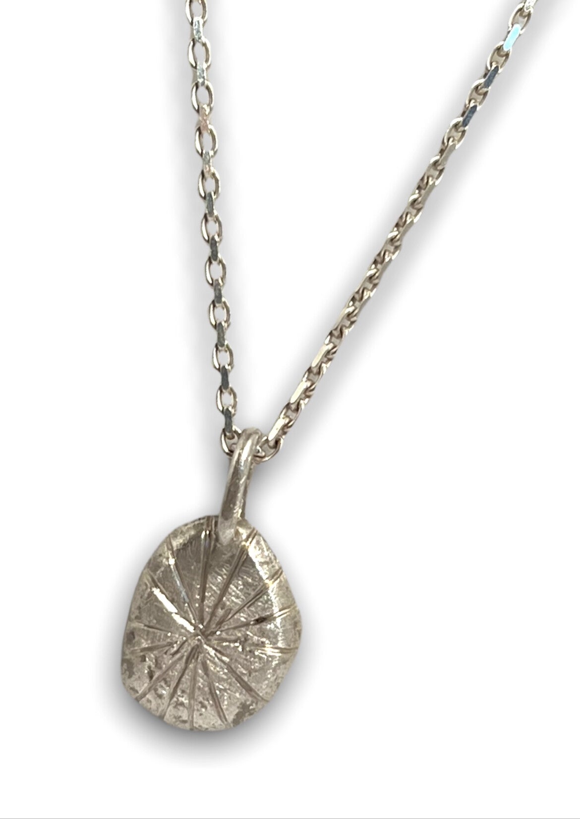A lovely shaped chunky pendant with the drawing of a star, every pendant is unique and different in shape! I work with the silver untill it is really shiny! The star is finished with a burnishing tool so it realy pops!
