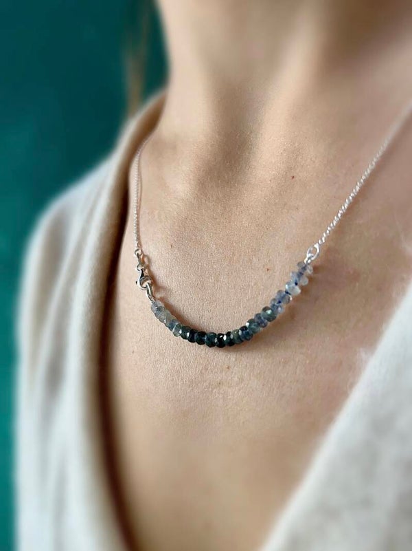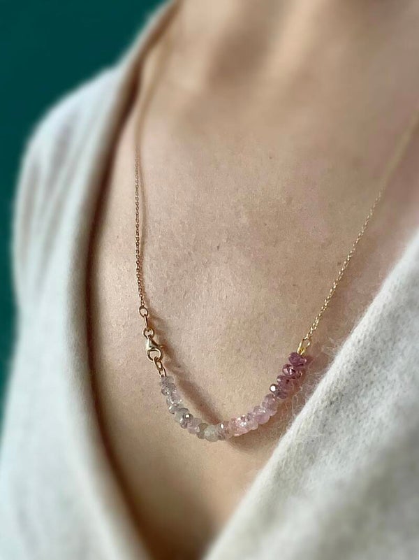Dit is een halsketting met natuurlijke edelstenen die we samen kiezen. Zo nu en dan vind ik strengen met edelstenen die ik niet aan mij kan laten voorbij gaan. Ik verwerk deze strengen super graag in mijn "Rainbow Necklaces". De stenen waarmee ik het meeste werk voor dit ontwerp zijn toermalijnen en saffieren maar spinel, parel en zirkoon passeerden ook reeds de revue. Andere steentjes zijn ook mogelijk op vraag!